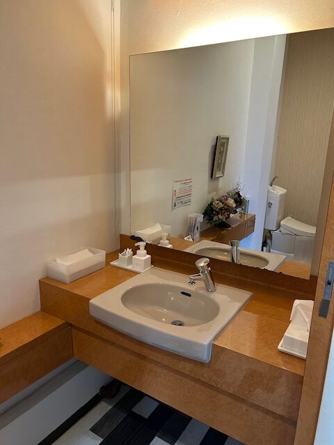 毎日掃除を徹底し、清潔に保っております。鏡もございますのでお化粧直しにもご利用ください。