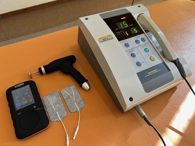 基本的には「手」で施術をおこないますが、ケガの回復などの補助として物理療法『ハイボルテージ治療器』『超音波治療器』などをを使う場合もございます。