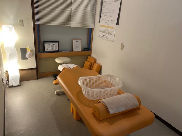 施術ベッドです。ベッドの間に仕切りがあるため、落ち着いて施術をうけることができます。